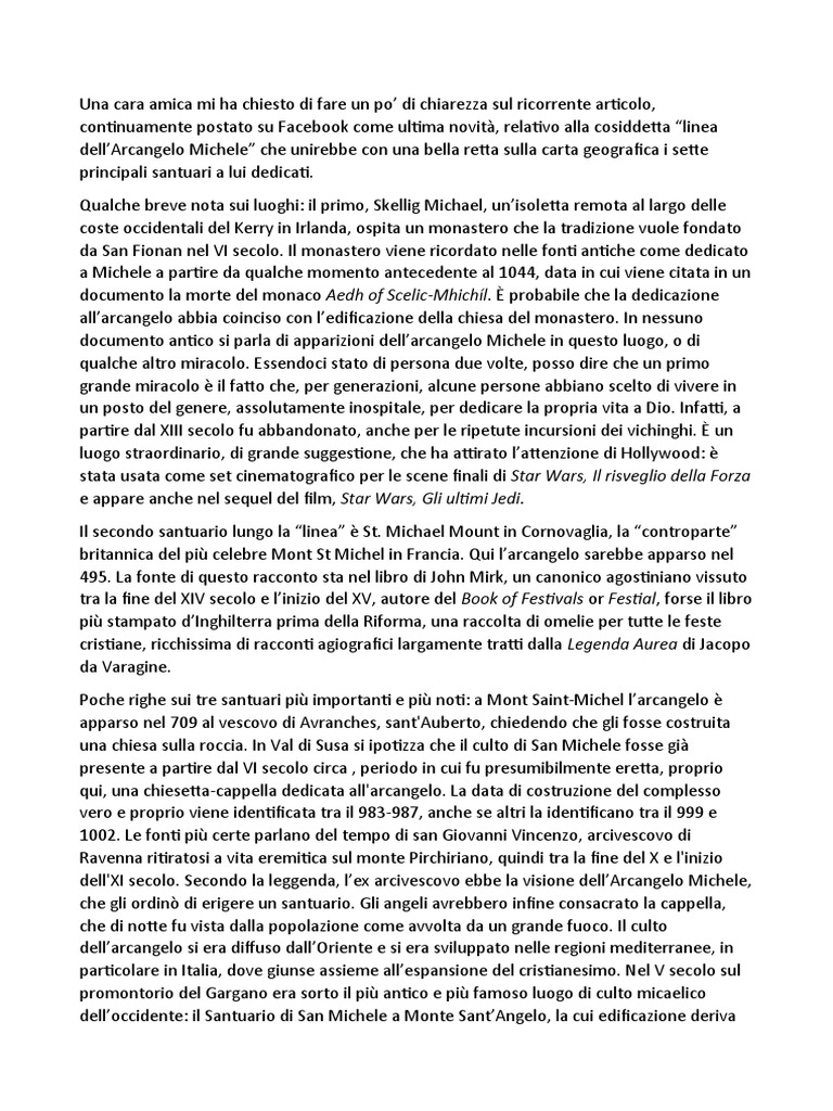 importantissime esclusioni di santuari di culto di San Michele “non allineati”; due in
