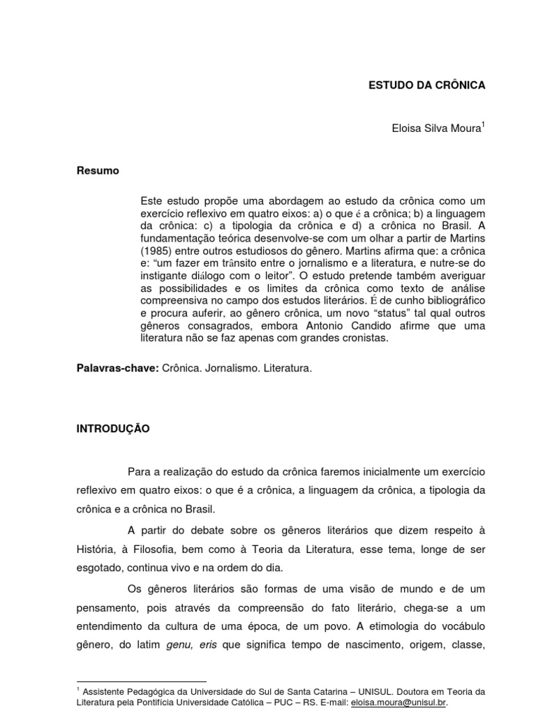 crônica e a crônica no Brasil.