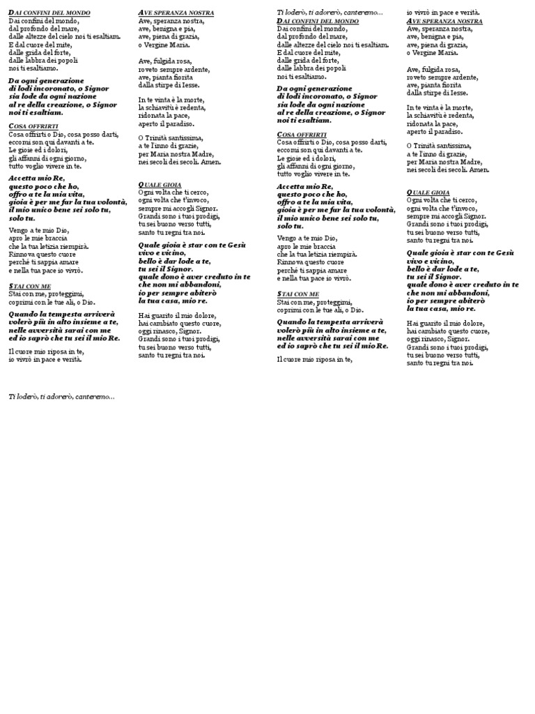 gioia è per me far la tua volontà, ogni volta che t’invoco, offro a te la mia vita, Ogni volta che ti cerco,