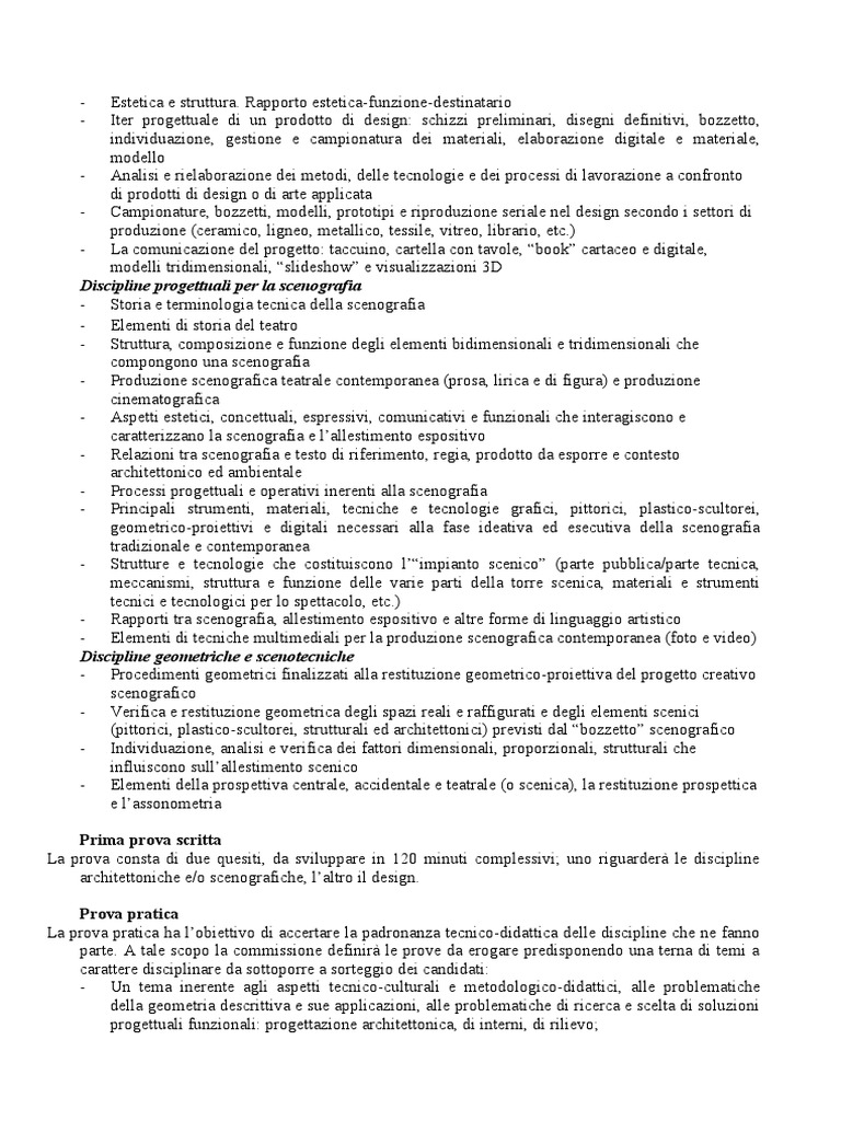 carattere disciplinare da sottoporre a sorteggio dei candidati: