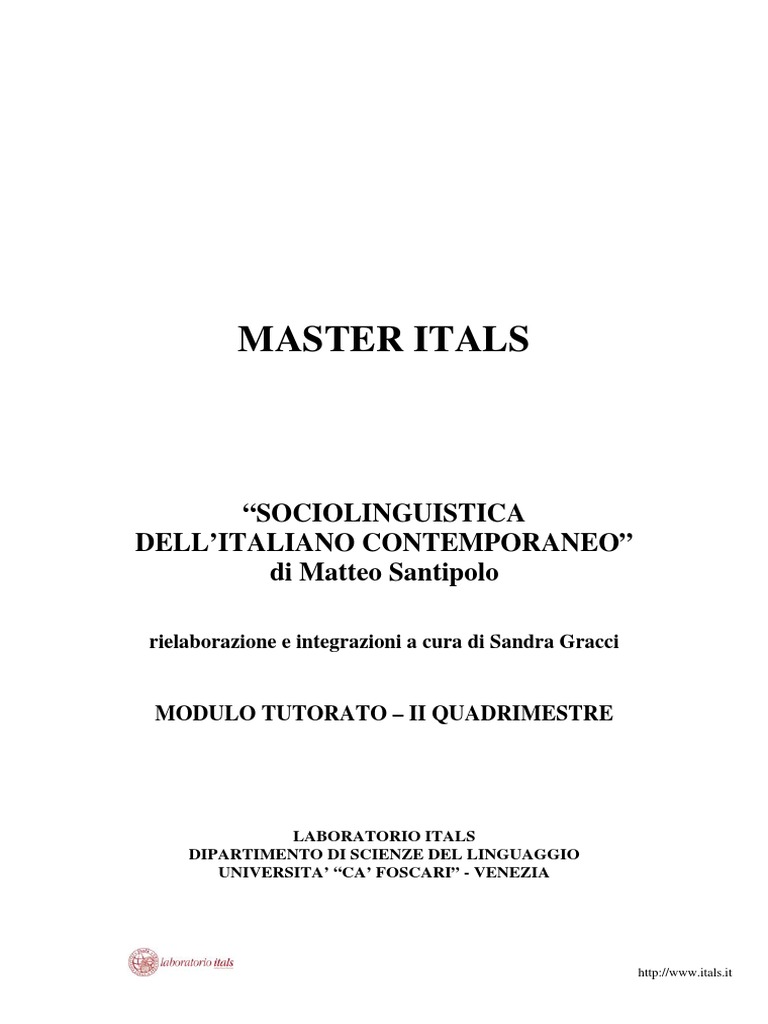 MASTER ITALS “Sociolinguistica dell’italiano contemporaneo” Matteo Santipolo