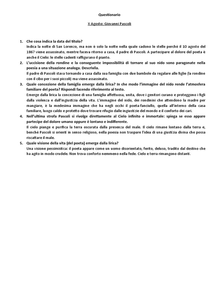 X Agosto: Giovanni Pascoli