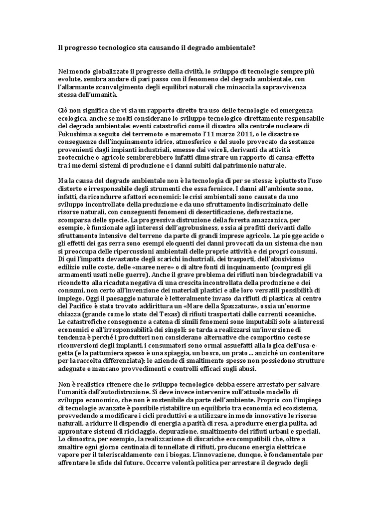 Non è realistico ritenere che lo sviluppo tecnologico debba essere arrestato per salvare