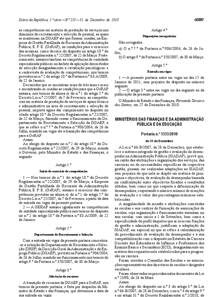do despacho n.º 18020/2010, publicado no Diário da Repú- 3 — A avaliação do desempenho realizada ao abrigo dos