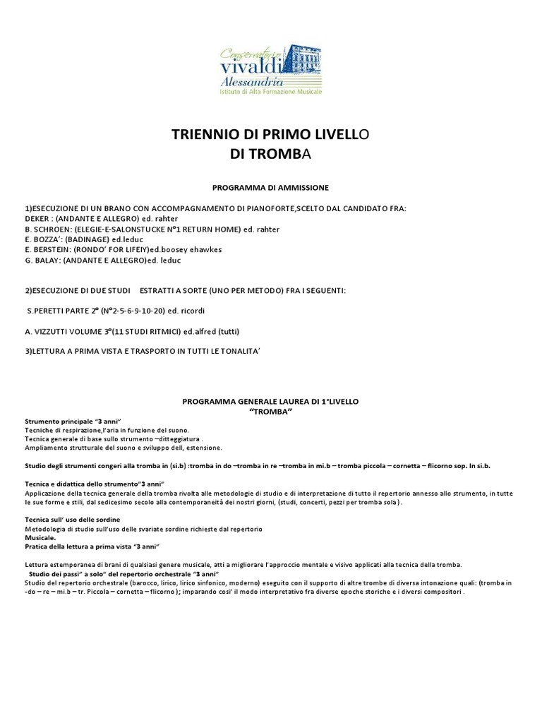 DCPL 46 CORSO DI DIPLOMA ACCADEMICO DI PRIMO LIVELLO IN TROMBA