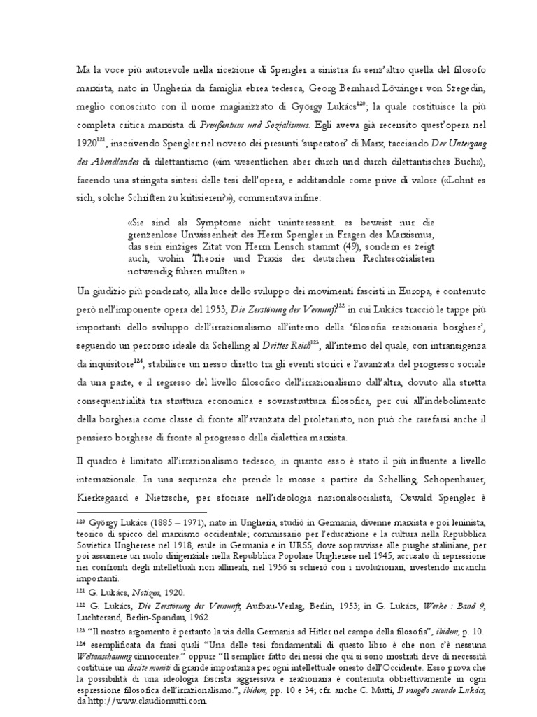 1920121, inscrivendo Spengler nel novero dei presunti ‘superatori’ di Marx, tacciando Der Untergang