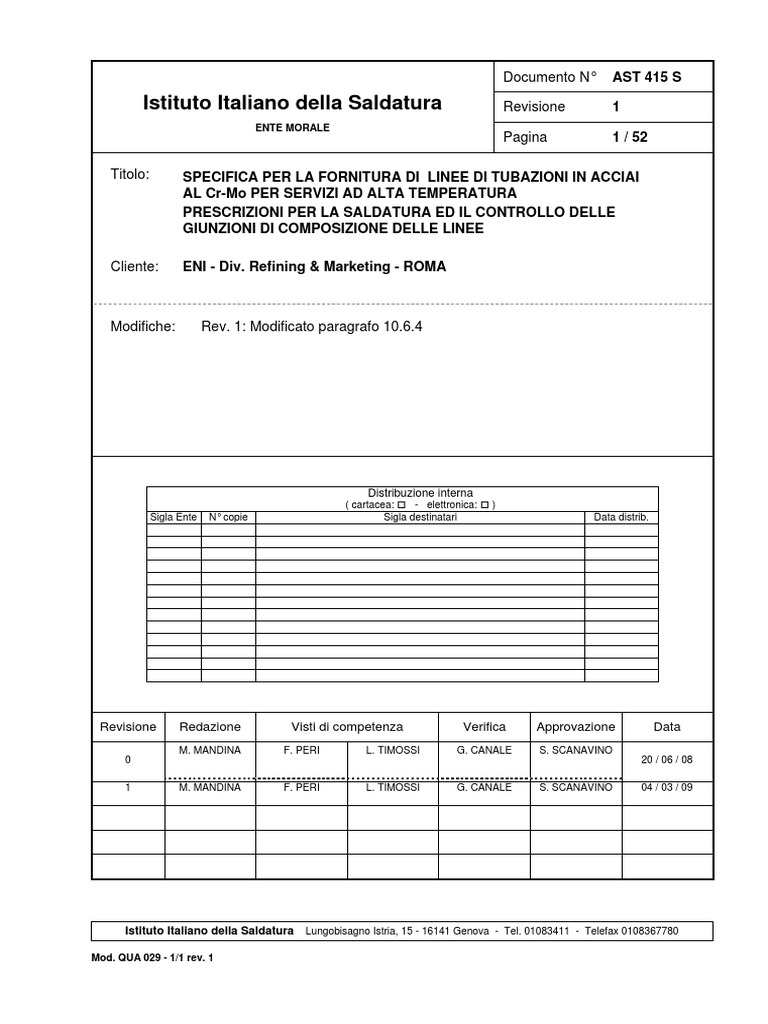 Istituto Italiano della Saldatura Lungobisagno Istria, 15 - 16141 Genova - Tel. 01083411 - Telefax 0108367780