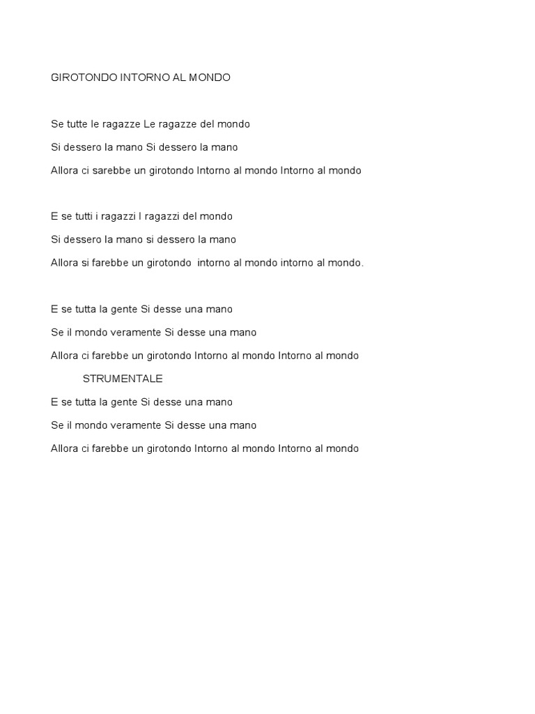 Allora ci farebbe un girotondo Intorno al mondo Intorno al mondo