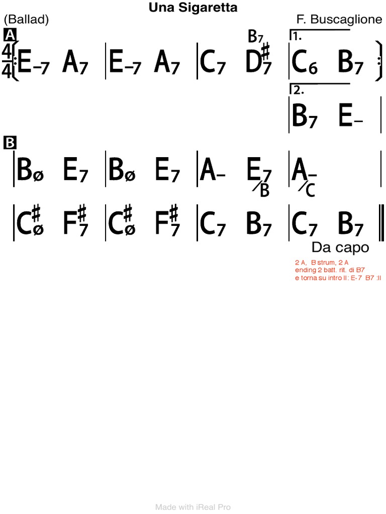 Da capo 2 A, B strum, 2 A ending 2 batt. rit. di B7 e torna su intro ||: E-7 B7 :||