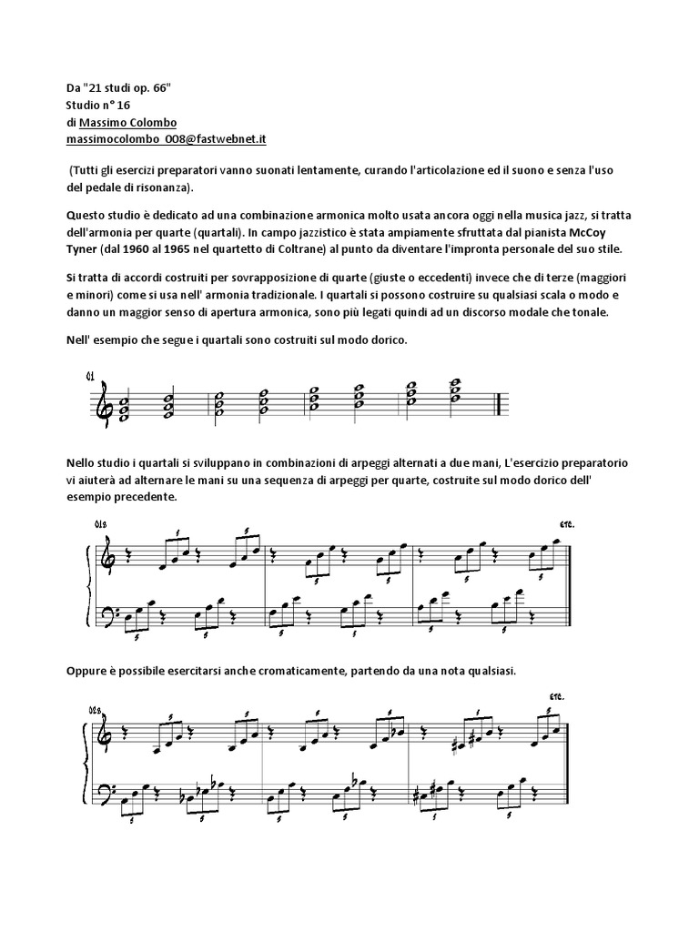 Nello studio i quartali si sviluppano in combinazioni di arpeggi alternati a due mani, L'esercizio preparatorio