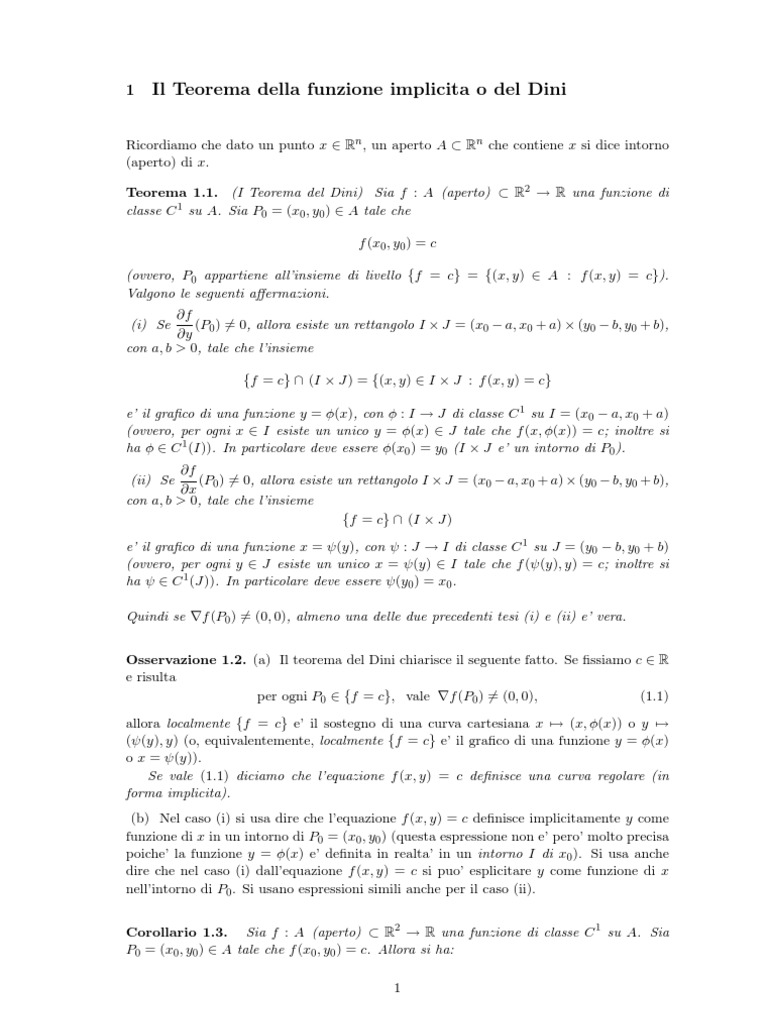 Teorema 1.1. (I Teorema del Dini) Sia f : A (aperto) ⊂ R2 → R una funzione di