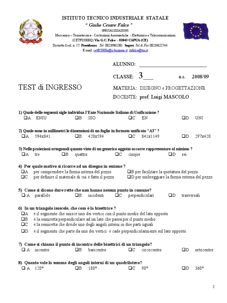 TEST di INGRESSO MATERIA: DISEGNO e PROGETTAZIONE