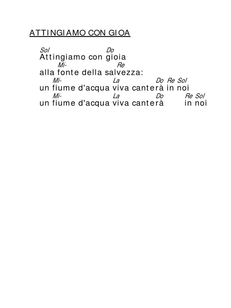 Sol Do Rit. Attingiamo con gioia Mi- Re alla fonte della salvezza: Mi- La Do Re Sol un fiume d'acqua viva cante rà in noi Mi- La Do Re Sol un fiume d'acqua viva cante rà in noi