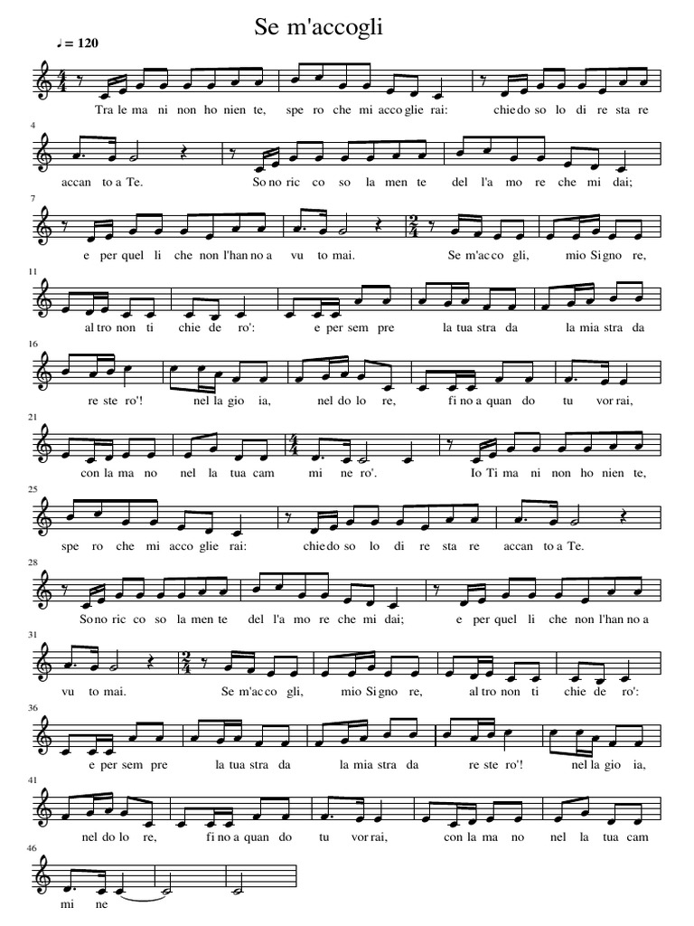 vu to mai. Se m'ac co gli, mio Si gno re, al tro non ti chie de ro':