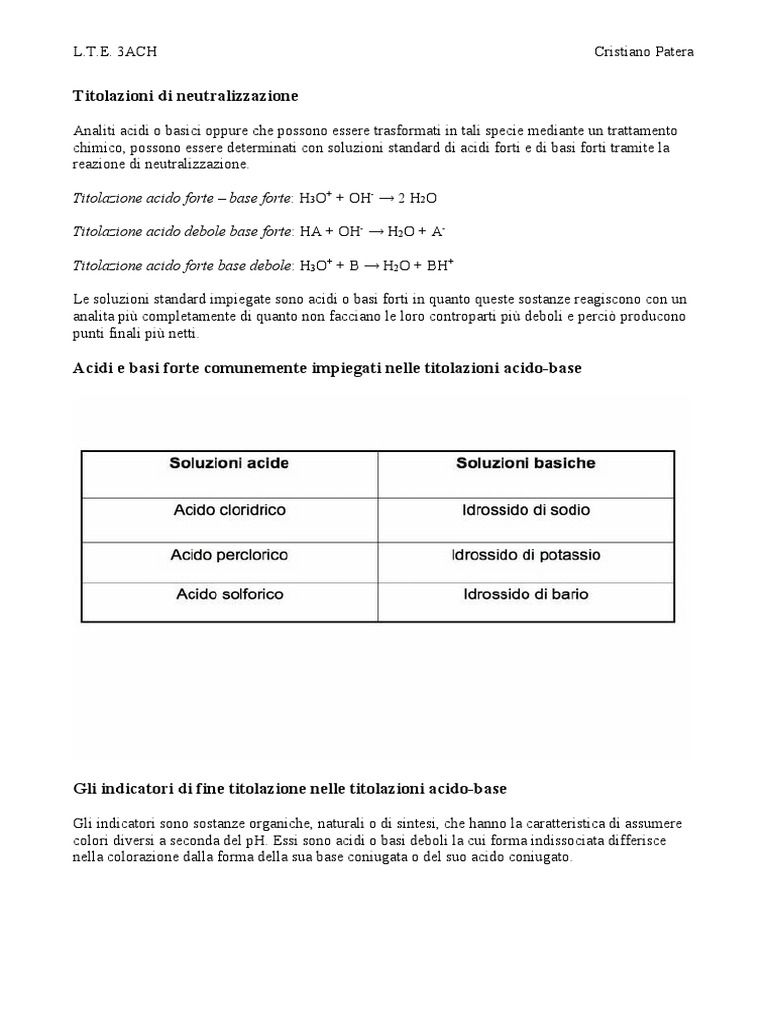 chimico, possono essere determinati con soluzioni standard di acidi forti e di basi forti tramite la