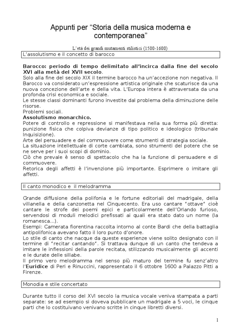 Origini e primi sviluppi della musica strumentale in Italia e in Europa (1600)