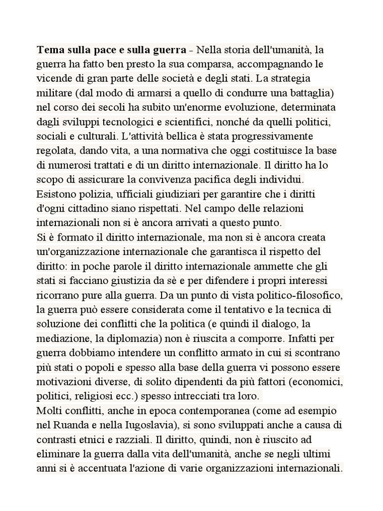Tema sulla pace e sulla guerra - Nella storia dell'umanità, la