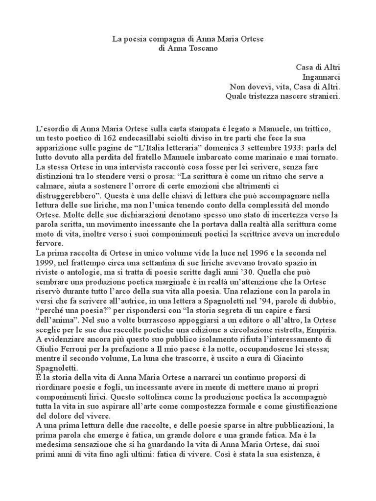 medesima sensazione che si ha guardando la vita di Anna Maria Ortese, dai suoi