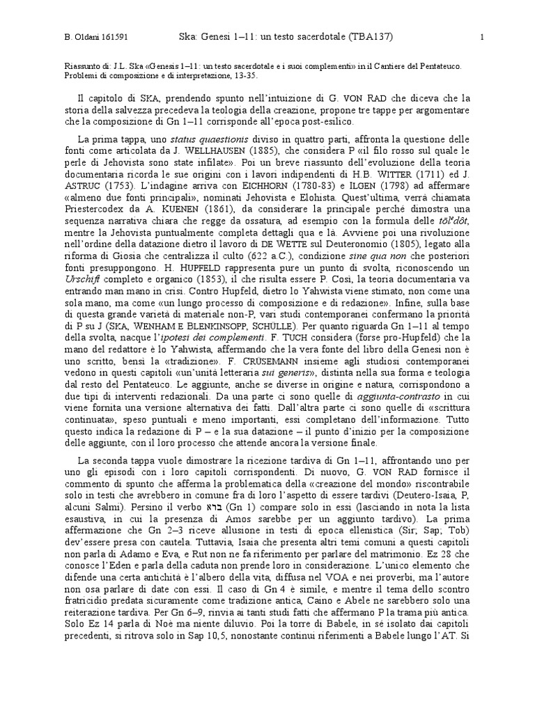 B. Oldani 161591 Ska: Genesi 1–11: un testo sacerdotale (TBA137) 2