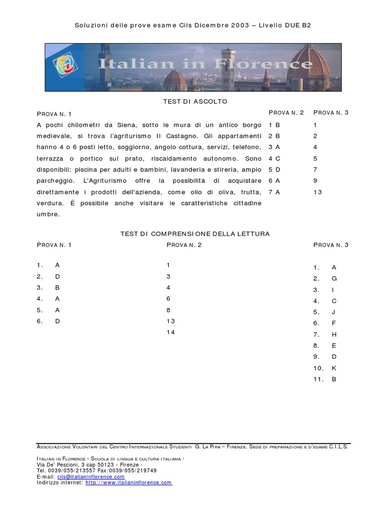Soluzioni delle prove esame Cils Dicembre 2003 – Livello DUE B2