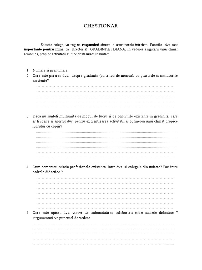 importante pentru mine, ca director al GRADINITEI DIANA, in vederea asigurarii unui climat