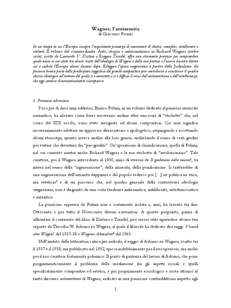 3 TH.W. ADORNO, Wagner, prefaz. e cura di M. Bortolotto, Einaudi, Torino 2008 2; ed. originale, Versuch über