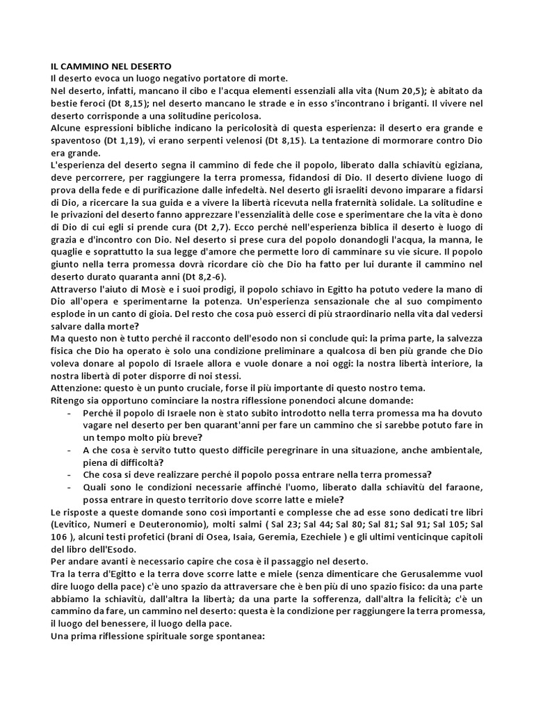 1) l'idea del cammino nel deserto fa parte della nostra prospettiva di fede oppure cerchiamo di