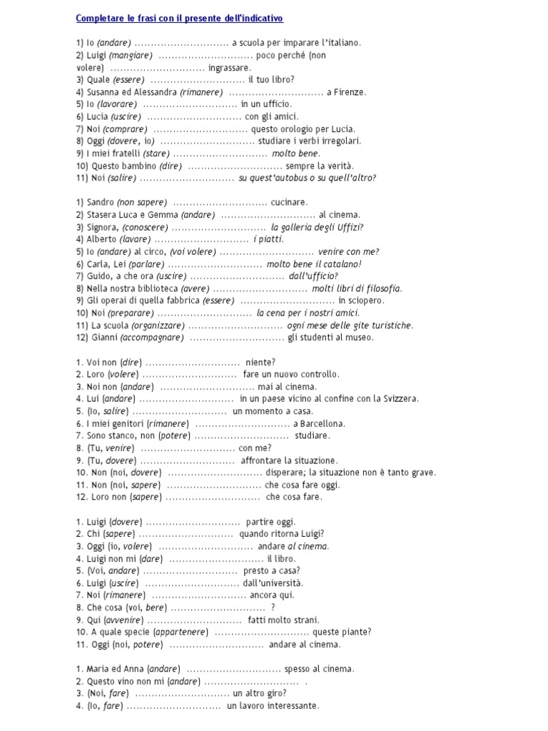 1) Io (andare) ............................. a scuola per imparare l’italiano.