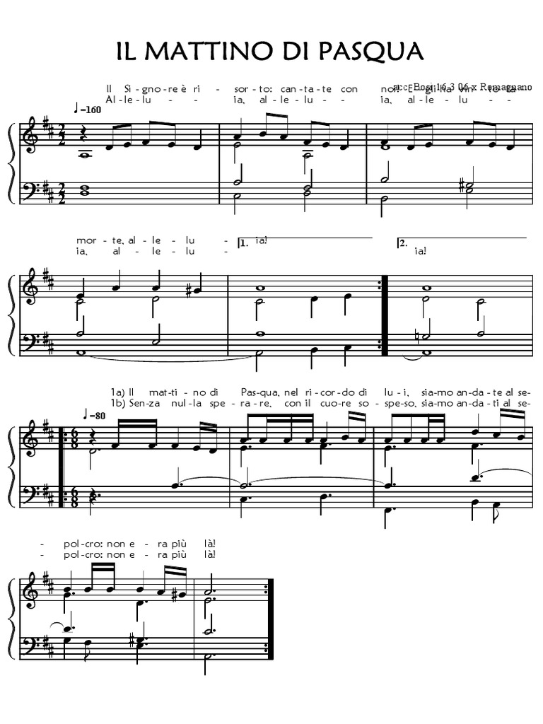 1a) Il mat-ti - no di Pas-qua, nel ri - cor - do di lu - i, sia-mo an-da - te al se-