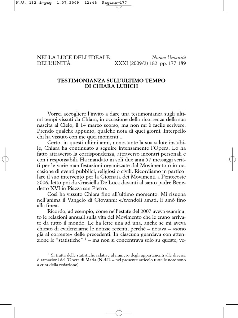 178 Testimonianza sull’ultimo tempo di Chiara Lubich