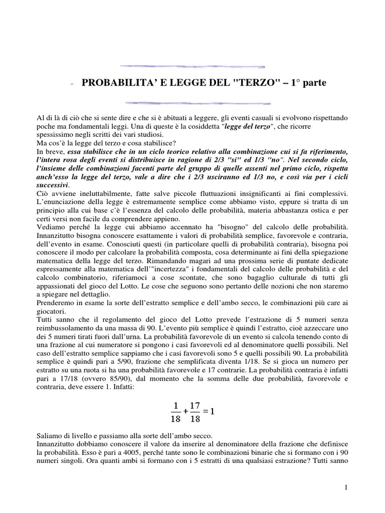 - PROBABILITA’ E LEGGE DEL "TERZO" – 2° parte