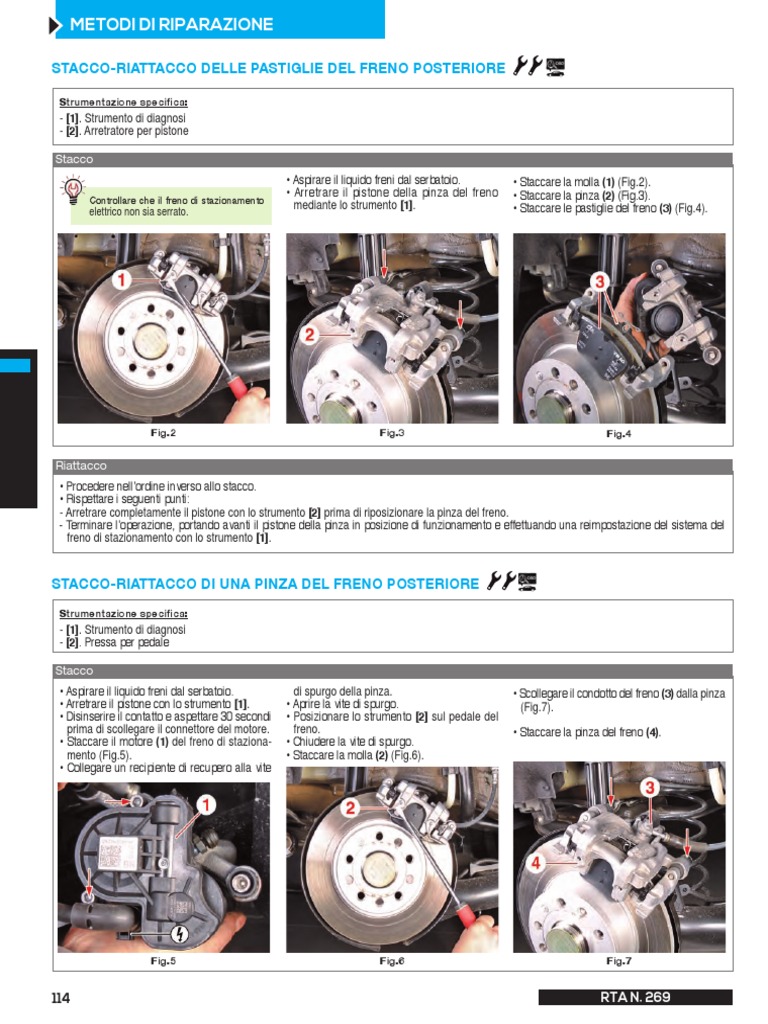 mediante lo strumento [1]. • Staccare le pastiglie del freno (3) (Fig.4).