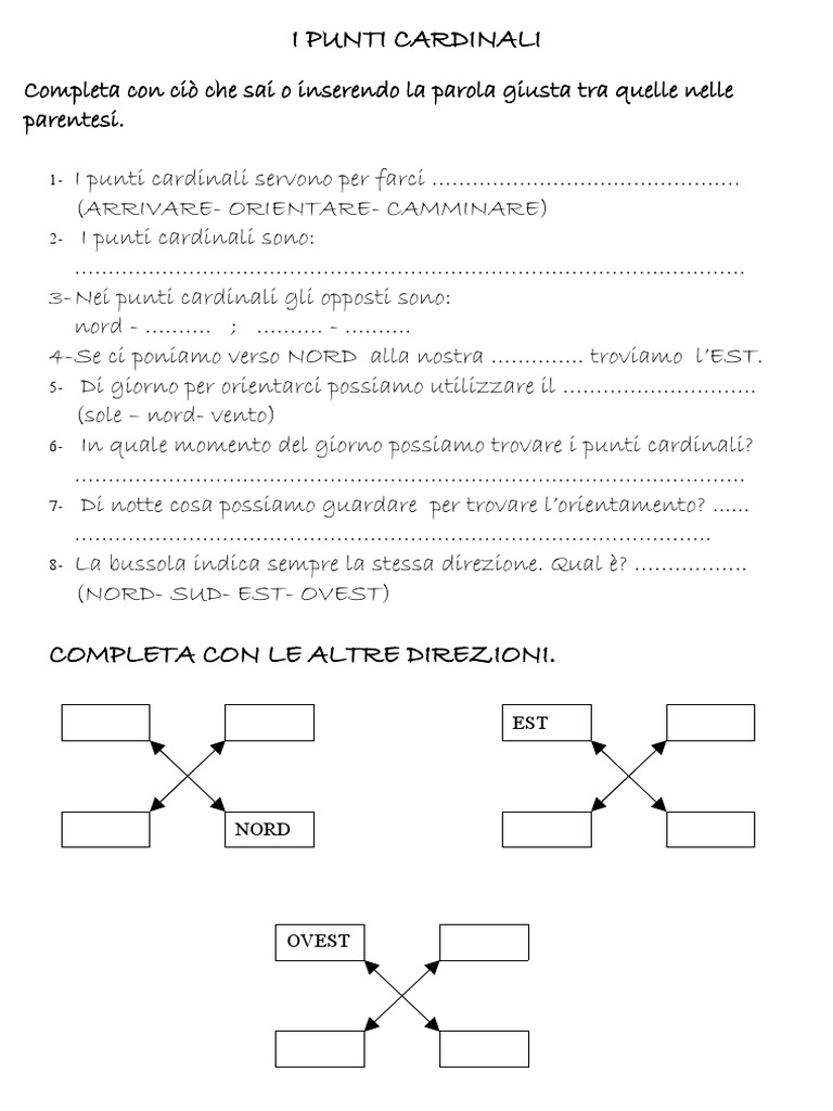 1- I punti cardinali servono per farci ……………………………………….
