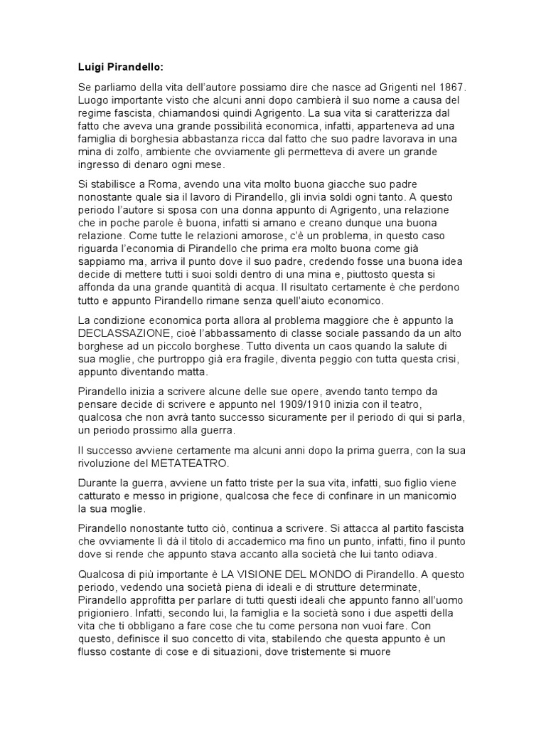 riguarda l’economia di Pirandello che prima era molto buona come già
