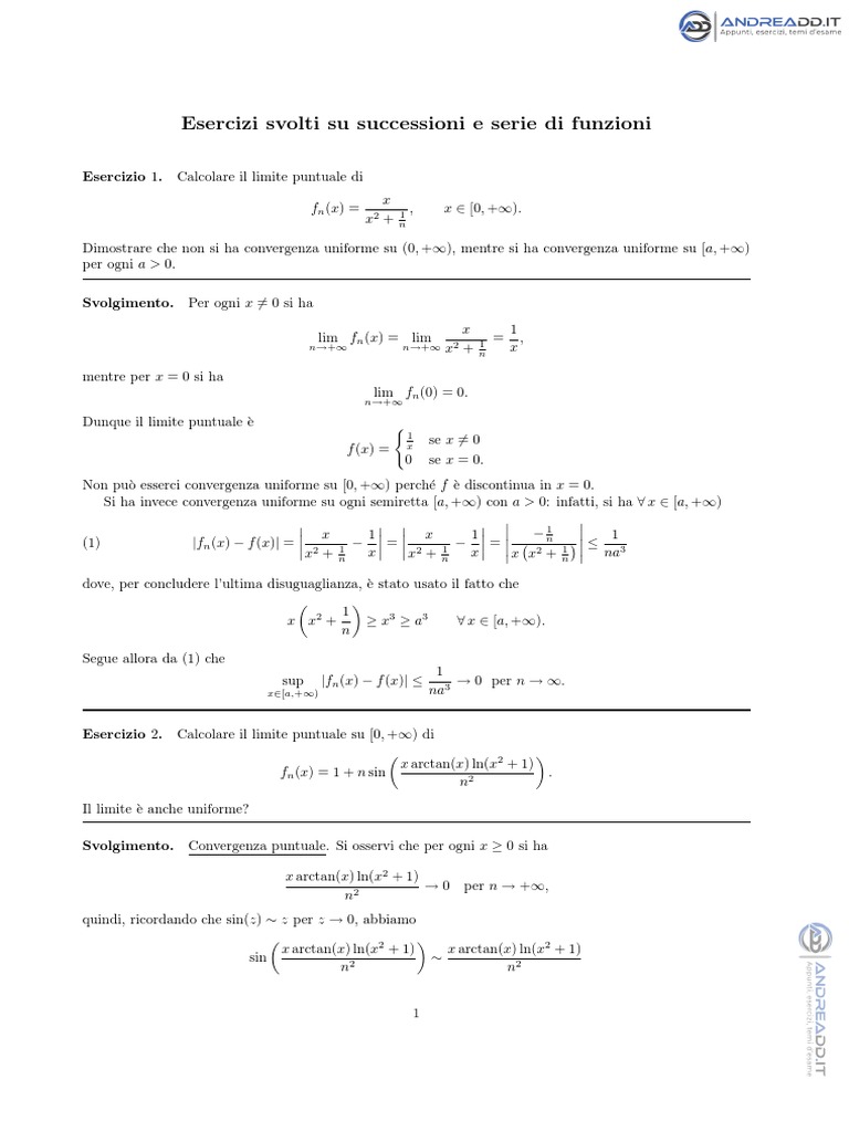 | Studio della Convergenza uniforme. Mostriamo che la convergenza di {fn } non è uniforme. Consideriamo