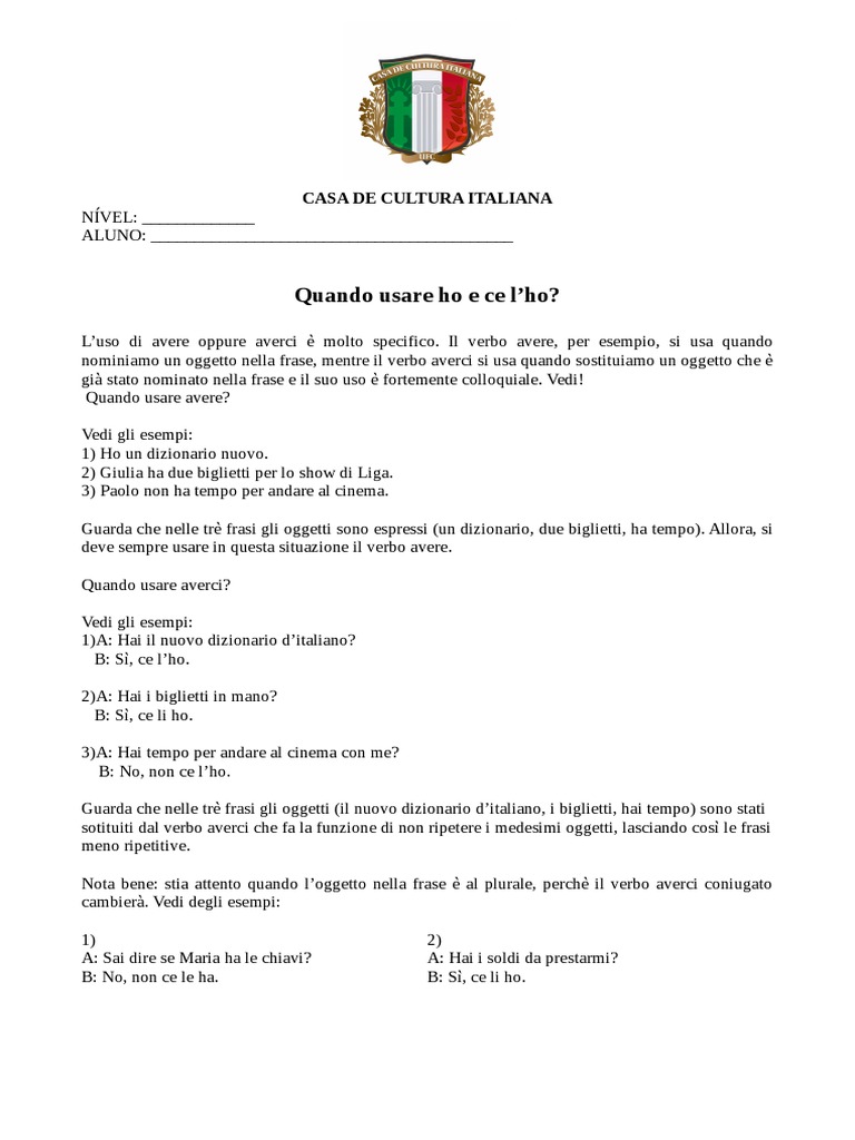 Nota bene: stia attento quando l’oggetto nella frase è al plurale, perchè il verbo averci coniugato