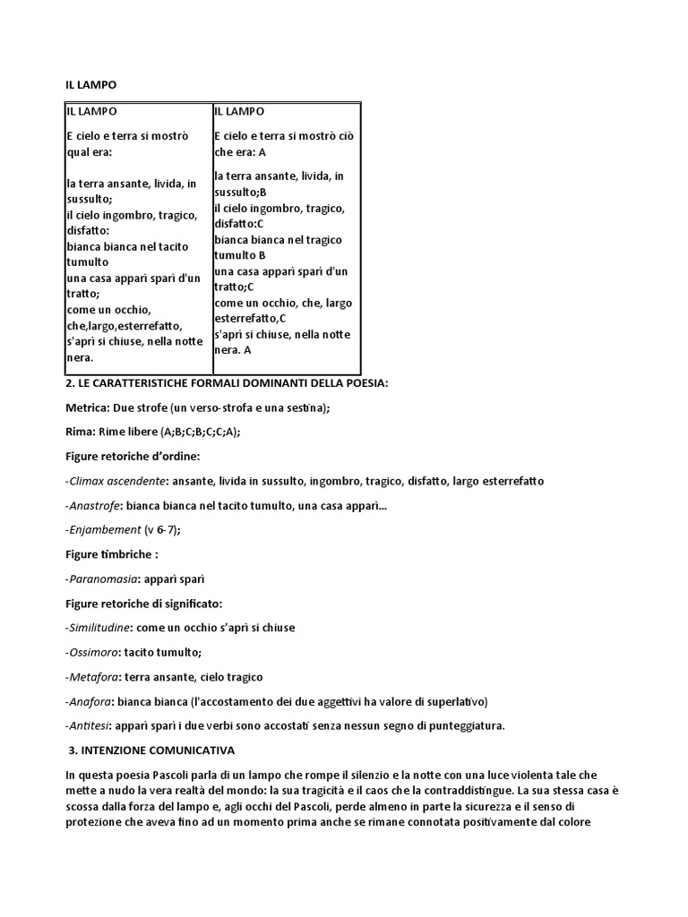 In questa poesia Pascoli parla di un lampo che rompe il silenzio e la notte con una luce violenta tale che