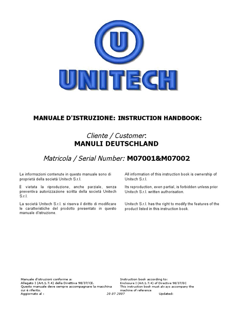 Il presente manuale è compilato in accordo alle This manual has been drawn up in compliance with