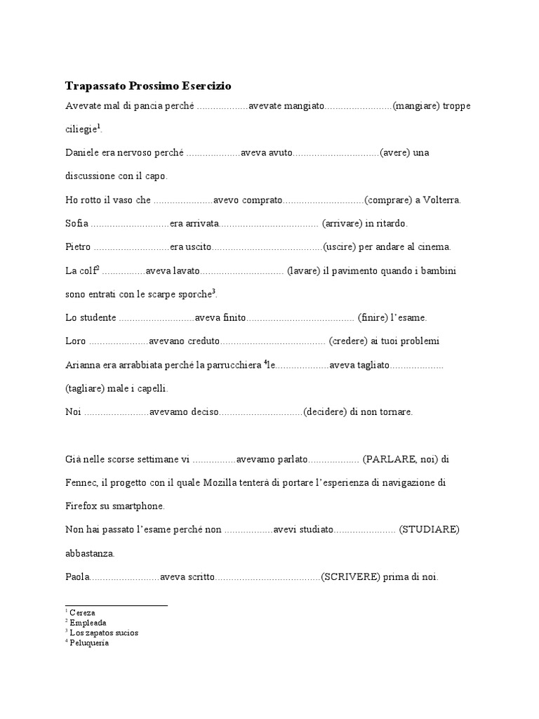 Trapassato Prossimo Esercizio