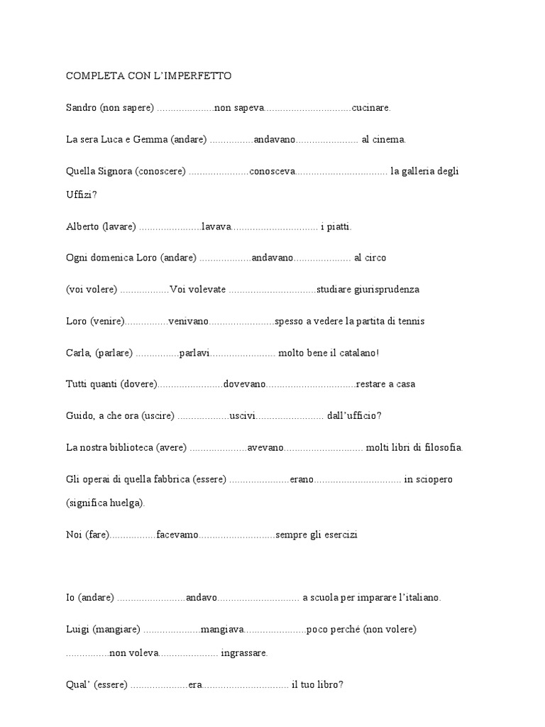 Io (andare) .........................andavo.............................. a scuola per imparare l’italiano.