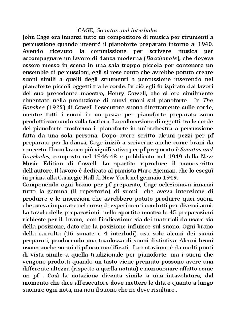 concerto. Il suo lavoro più significativo per pf preparato è Sonatas and