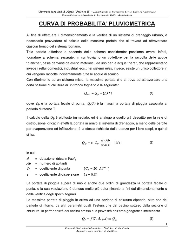 Corso di Costruzioni Idrauliche – Prof. Ing. F. De Paola
