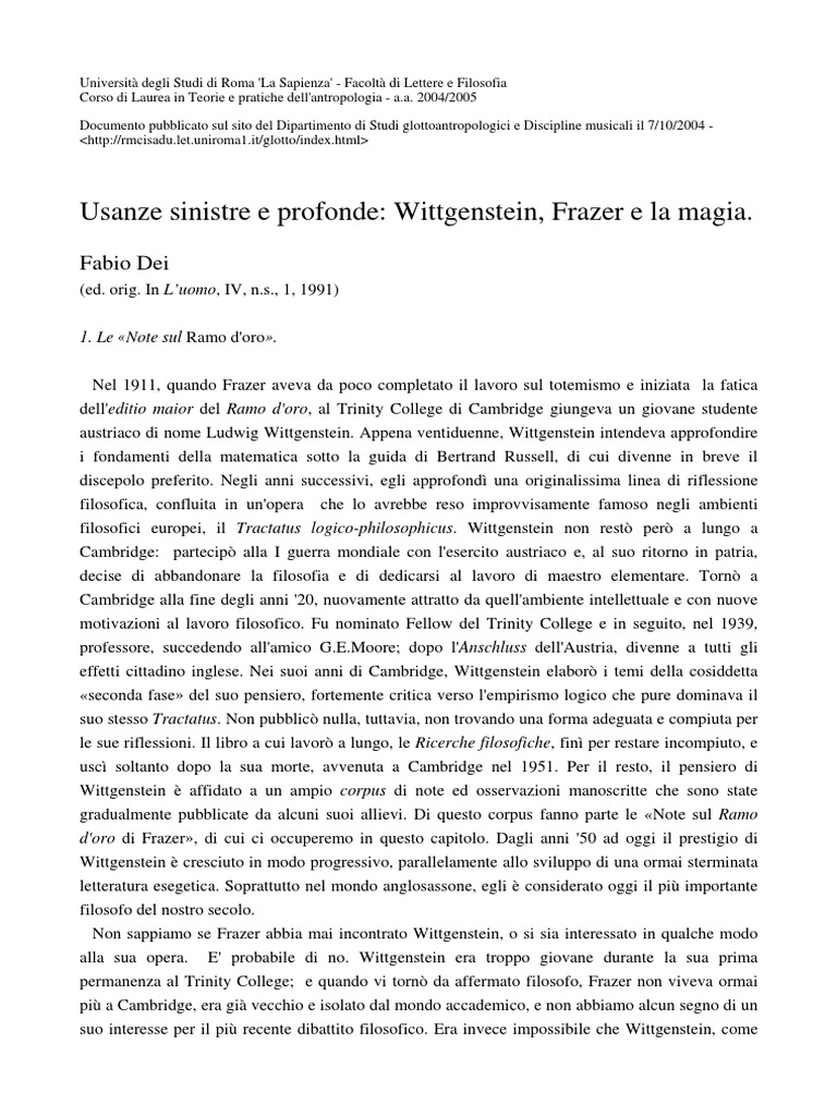 Non sappiamo se Frazer abbia mai incontrato Wittgenstein, o si sia interessato in qualche modo