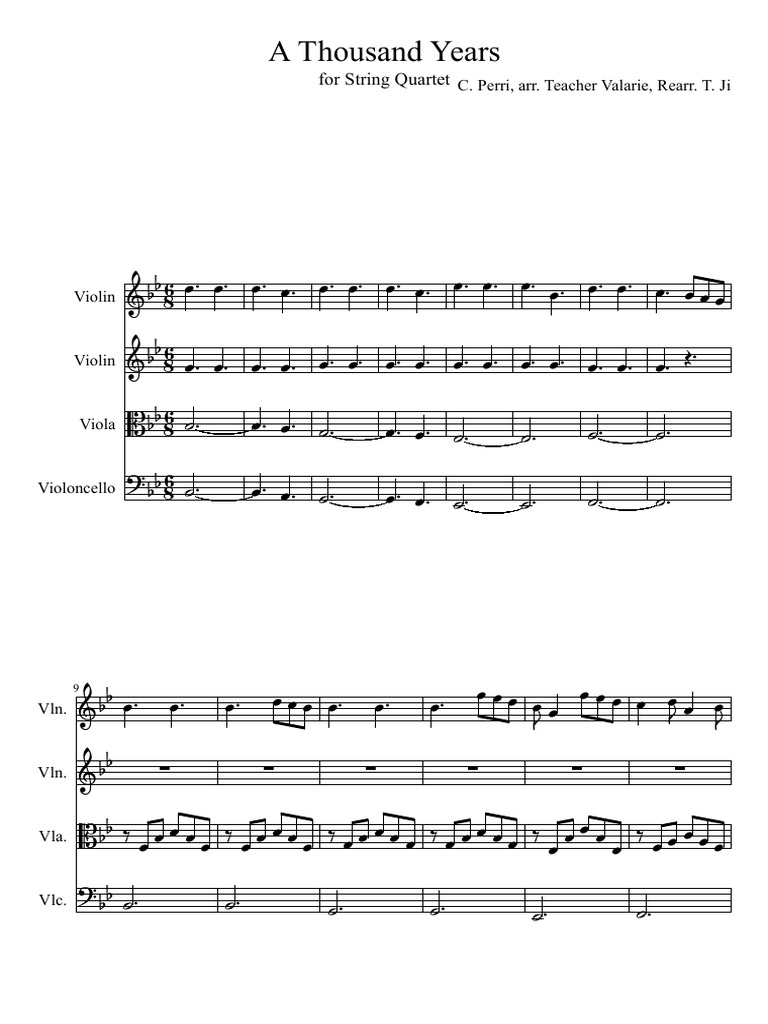 for String Quartet C. Perri, arr. Teacher Valarie, Rearr. T. Ji