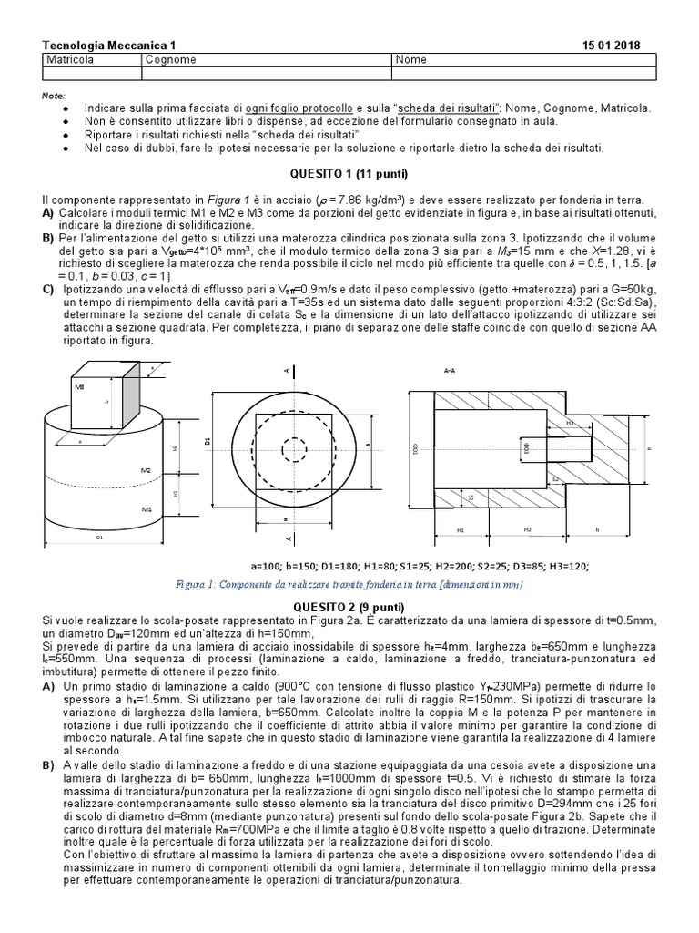 A) Calcolare i moduli termici M1 e M2 e M3 come da porzioni del getto evidenziate in figura e, in base ai risultati ottenuti,