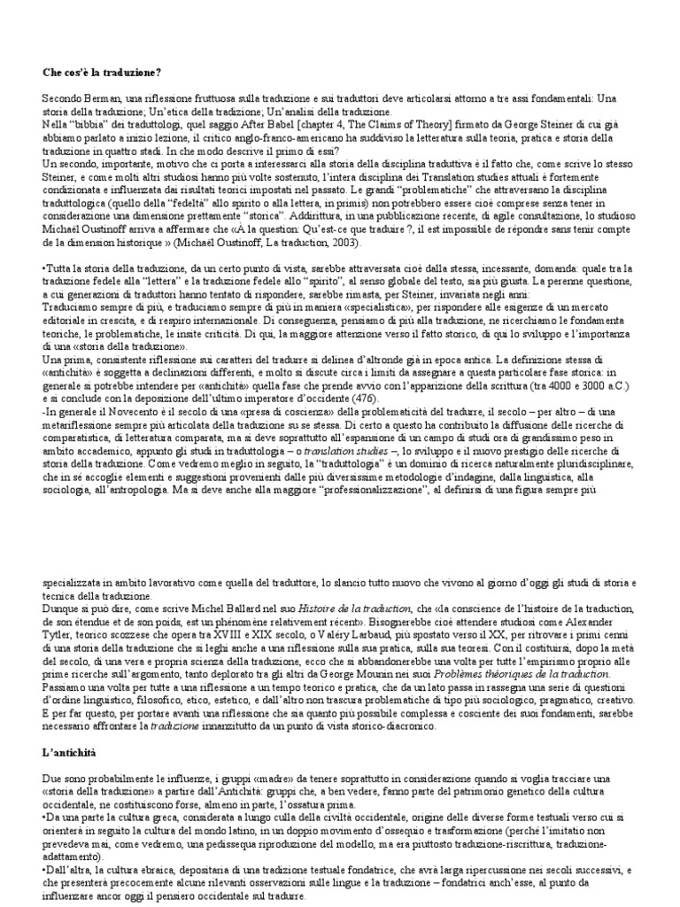 storia della traduzione; Un’etica della tradizione; Un’analisi della traduzione.
