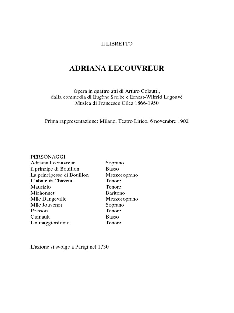 Adriana Lecouvreur Libretto PDF