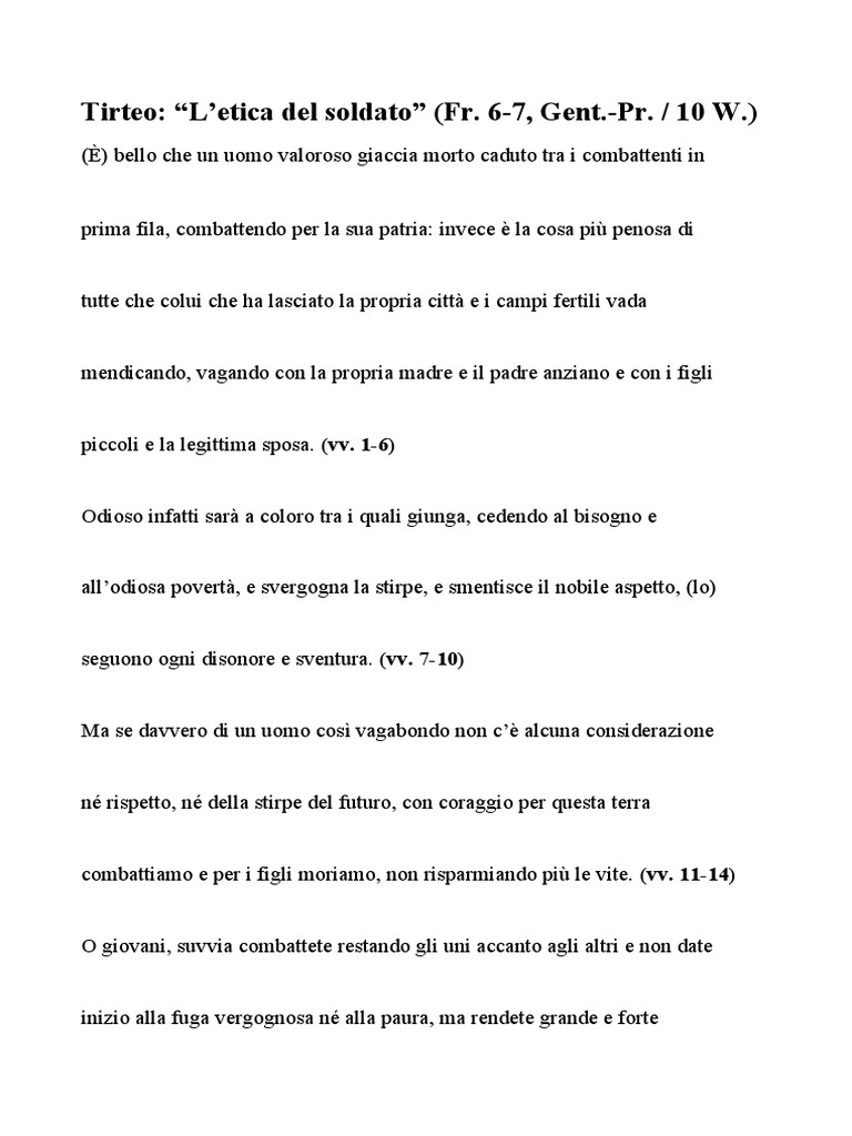 Tirteo: “L’etica del soldato” (Fr. 6-7, Gent.-Pr. / 10 W.