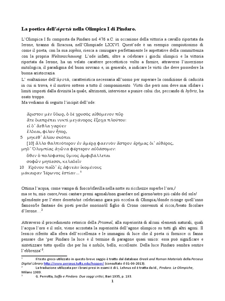 La poetica dell’ἀρετά nella Olimpica I di Pindaro.