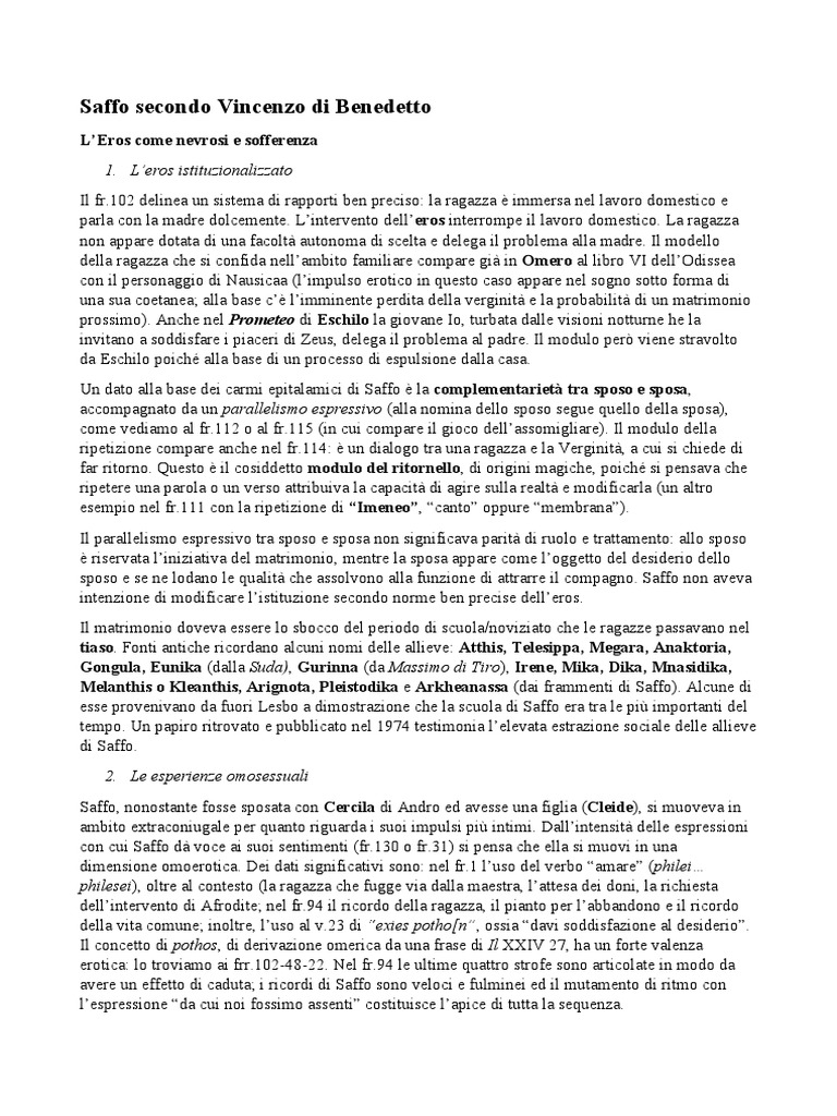Saffo secondo Vincenzo di Benedetto
